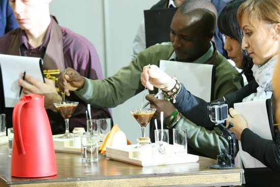 Rhoda Wambui presents on the first day of the ABWG. Photo courtesy Angel-in-us.Four international judges (including me) participated: Jon Macau (Kenya), Elisabet Sereno (Spain), and Silvia Constantin (Romania). Each had a long resume of coffee and judging experience.One surprising omission was the lack of a barista from North America. I heard that some competitors were contacted, but did not respond. Talking with the baristas who did come, I can understand why. One barista I spoke with told me that when ABWG first contacted him with the offer of an all-expense-paid trip to Korea to compete, he thought it was some kind of scam. Only over time did he realize the offer was real (and, speaking with him post-competition, he was very glad he came). Next year perhaps, when a US competitor is contacted to compete, he or she will heed the call and attend.